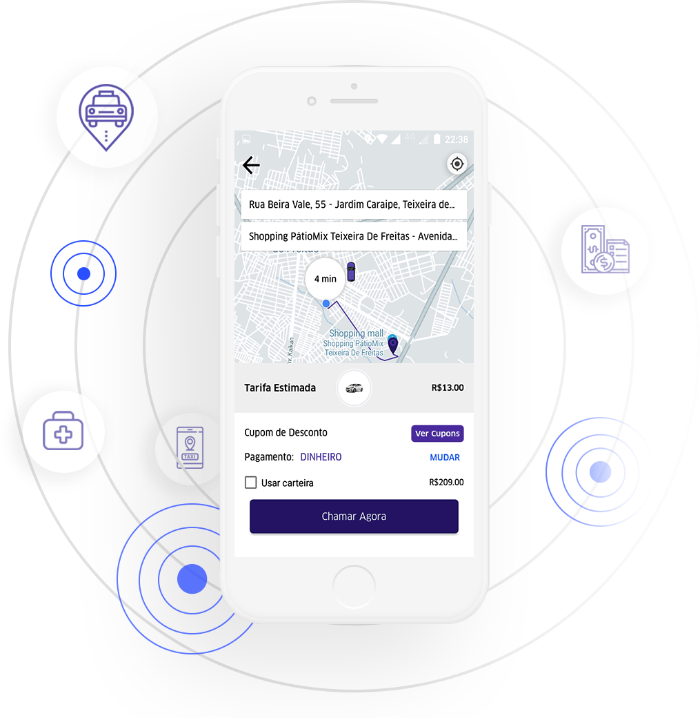 Urbano Taxi é a maneira mais inteligente de se locomover. Um toque e um carro ou moto vai até você. Seu motorista sabe exatamente para onde ir. E você pode pagar com dinheiro ou cartão.